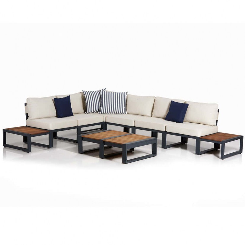 Το Σαλόνι Κήπου La Puerta αποτελεί ιδανική επιλογή για κάθε υπαίθριο χώρο με άποψη και στιλ, χάρη στον μοντέρνο και εργονομικό σχεδιασμό. Αποτελούμενο από έναν γωνιακό καναπέ και ένα τραπεζάκι, το σετ διαθέτει στιβαρό και ανθεκτικό σκελετό από αλουμίνιο με επιφάνειες από ξύλο σε φυσική απόχρωση, που εξασφαλίζουν μία αίσθηση ζεστασιάς στο τελικό αποτέλεσμα. Ο καναπές είναι εξοπλισμένος με αναπαυτικά μαξιλάρια με πλούσια γέμιση από αφρώδες υλικό 28 dns, προσφέροντας την τέλεια ισορροπία στήριξης και απαλότητας για άνεση που διαρκεί. Η υφασμάτινη ακρυλική επένδυση εξασφαλίζει μακροχρόνια χρήση και εύκολη συντήρηση, διατηρώντας το σε άριστη κατάσταση ακόμα και σε εξωτερικούς χώρους.