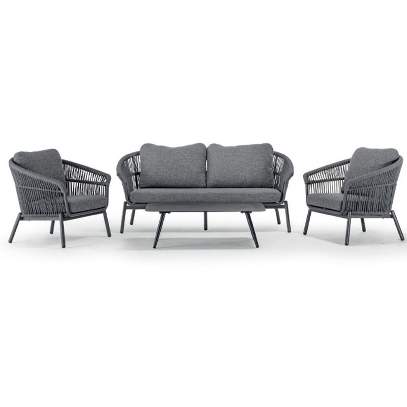 Ανακαλύψτε το Σετ Σαλόνι Tropea (4Τμχ), ένα κομψό σετ τεσσάρων τεμαχίων που συνδυάζει σύγχρονη αισθητική και υψηλή αντοχή. Με σκελετό από αλουμίνιο και πλέξη από σχοινί textylene Ø8 mm, προσφέρει στυλ και σταθερότητα για κάθε εξωτερικό χώρο. Το σετ περιλαμβάνει δύο πολυθρόνες, έναν διθέσιο καναπέ και ένα τραπέζι. Τα μαξιλάρια, επενδεδυμένα με ύφασμα Olefin και γέμιση Quick Dry Foam, εξασφαλίζουν άνεση, γρήγορο στέγνωμα και ανθεκτικότητα. Το Tropea είναι η ιδανική επιλογή για χαλάρωση με στυλ στον κήπο ή τη βεράντα σας.