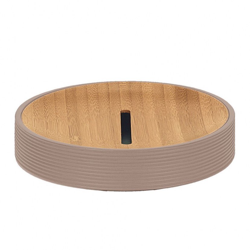 Η Σαπουνοθήκη Kyoto 5079 είναι ένα εντυπωσιακό συνονθύλευμα πολυρεζίνης και μπαμπού. Φέρει μοντέρνα βάση με ανάγλυφα σχέδια και επιφάνεια από μπαμπού, που δίνει μία πιο εξωτική αύρα στο τελικό αισθητικό αποτέλεσμα. Αποτελεί ιδανική επιλογή για εσάς που θέλετε κάτι κομψό, ποιοτικό και πρακτικό! Φέρει οπή για να μην συσσωρεύονται τα νερά στην επιφάνεια και λιώνει το σαπούνι.