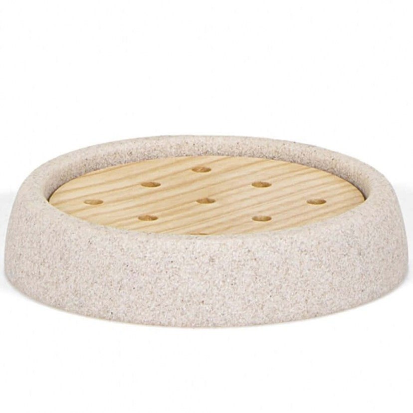 Η Σαπουνοθήκη Sandstone AH-BA21031 συνδυάζει την αυθεντικότητα του φυσικού αμμόλιθου με την κομψότητα του ξύλου τέφρας, προσφέροντας μια εκλεπτυσμένη και γήινη αισθητική στο μπάνιο σας. Διαθέτει ξύλινο φίλτρο που επιτρέπει στο νερό να στραγγίζει, προστατεύοντας το σαπούνι και διατηρώντας το στεγνό για μεγαλύτερη διάρκεια. Για τη φροντίδα της, καθαρίστε με νωπό πανί, αποφεύγοντας λειαντικά προϊόντα ώστε να παραμείνει αναλλοίωτη η φυσική της ομορφιά.