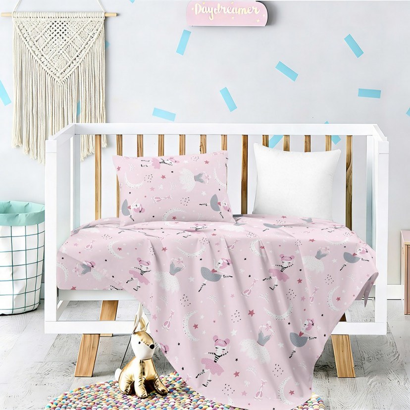 Χαρίστε τον ιδανικό ύπνο στην κορούλα σας, κάνοντας δικό σας το Σετ Βρεφικά Σεντόνια Ballerina Με Λάστιχο (3τμχ). Φέρει απαλά χρώματα και χαριτωμένα παιδικά σχέδια με μπαλαρίνες. Κατασκευασμένο από 100% βαμβακερό-σατέν ύφασμα 200 κλωστών, προσφέρει απαλή υφή και λείο φινίρισμα, εξασφαλίζοντας άνετο και υγιεινό ύπνο. Το σετ αποτελείται από ένα flat σεντόνι, ένα σεντόνι με λάστιχο και μία μαξιλαροθήκη. Πλένεται στους 40°C και σιδερώνεται σε μέτρια θερμοκρασία. Απαγορεύεται η χρήση χλωρίου ή λευκαντικού.