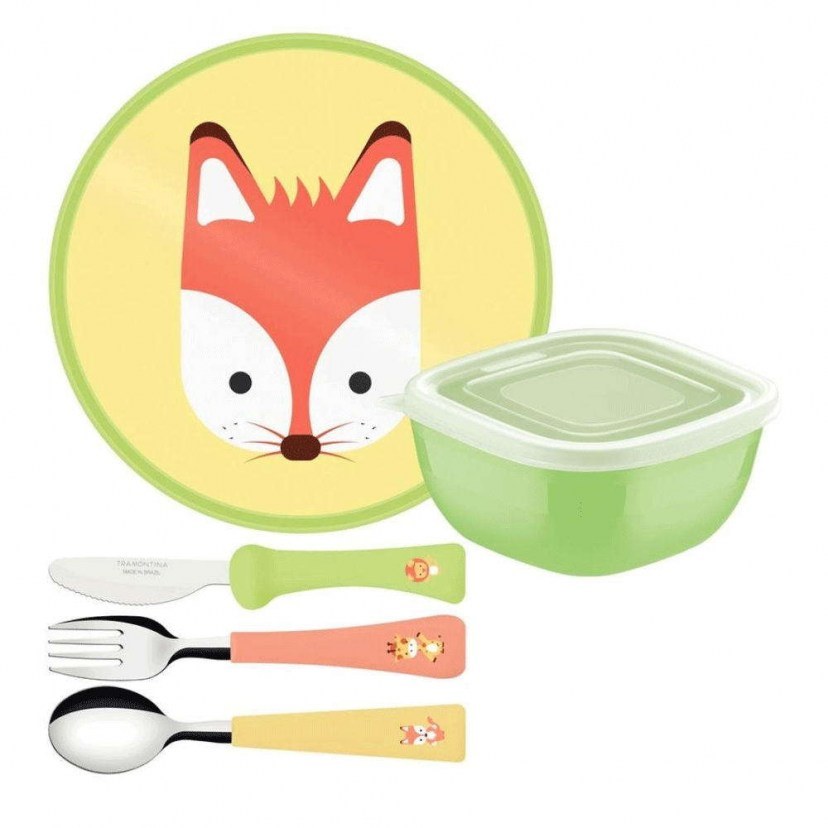 Το Σετ Παιδικό Σερβίτσιο Φαγητού Baby Friends (5Τμχ) TR23797908 είναι η νούμερο ένα επιλογή για το παιδί σας. Διαθέτει χαριτωμένο σχεδιασμό που θα παροτρύνει το παιδί σας να τρώει μόνο του. Αποτελείται από ένα πιάτο με διάμετρο 20 cm, από ένα φαγητοδοχείο με χωρητικότητα 600ml, από ένα κουτάλι, ένα πιρούνι και ένα μαχαίρι με μήκος 7.62 cm το καθένα. Κατασκευάζεται από πολυπροπυλένιο και ανοξείδωτο ατσάλι που προσφέρουν ανθεκτικότητα και ασφάλεια. Είναι κατάλληλο για πλυντήριο πιάτων. Συνίσταται η χρήση σε παιδιά άνω των 36 μηνών.