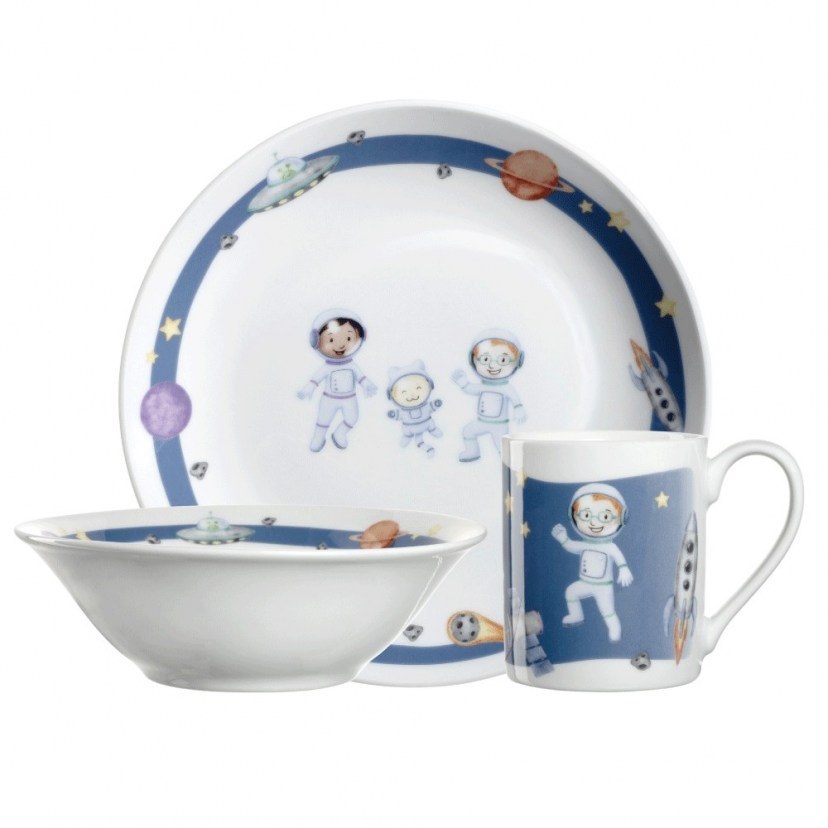 Το Σετ Παιδικό Σερβίτσιο Φαγητού Space (3Τμχ) 022799L σχεδιάστηκε για να κάνει πιο διασκεδαστική τη διαδικασία του φαγητού για το παιδί σας. Φέρει χαριτωμένα σχέδια με αστροναύτες και άλλες παραστάσεις από τον κόσμο του διαστήματος. Είναι κατάλληλο για πλυντήριο πιάτων και φούρνο μικροκυμάτων. Το σετ περιλαμβάνει πιάτο μπωλ και κούπα.