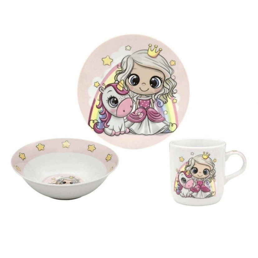 Η πιο γλυκιά και χαριτωμένη επιλογή για τα γεύματα του παιδιού σας είναι το Σετ Παιδικό Σερβίτσιο Φαγητού Unicorn&Fairy (3Τμχ) LXN08520103. Κατασκευάζεται από ποιοτική πορσελάνη και φέρει για σχέδιο μία πριγκίπισσα και έναν μονόκερο, που θα ξετρελάνουν την κορούλα σας. Διαθέτει πιστοποιητικό καταλληλότητας SGS. Το σετ αποτελείται από ένα ρηχό πιάτο, μία κούπα και ένα μπολάκι.