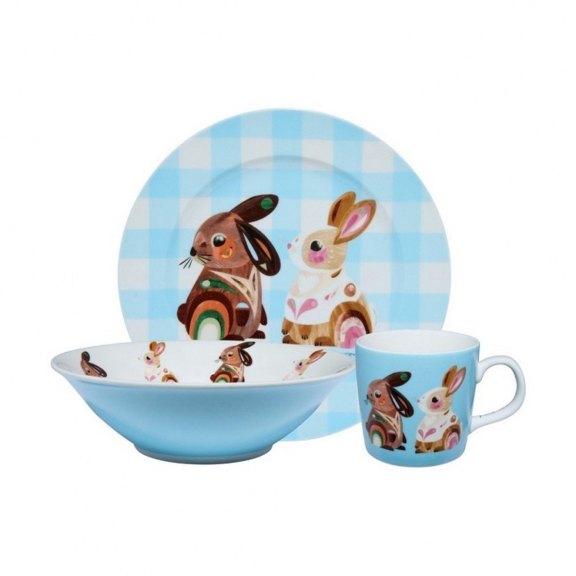 Το Παιδικό Σερβίτσιο Pete Cromer Barn Friends Κουνελάκια (3τμχ) μετατρέπει την ώρα του φαγητού σε μια διασκεδαστική εμπειρία γεμάτη χρώμα, φιλοξενώντας τα υπέροχα κουνελάκια του γνωστού καλλιτέχνη σε έναν σχεδιασμό που ενθουσιάζει τους μικρούς μας φίλους. Η ολοκληρωμένη αυτή σύνθεση περιλαμβάνει μια κούπα χωρητικότητας 375ml, ένα μπολ δημητριακών και ένα πιάτο, όλα κατασκευασμένα από ανθεκτικά υλικά που αντέχουν στην καθημερινή χρήση, ενώ η ασφαλής τους κατασκευή εξασφαλίζει ότι το παιδί απολαμβάνει το γεύμα του με απόλυτη άνεση.