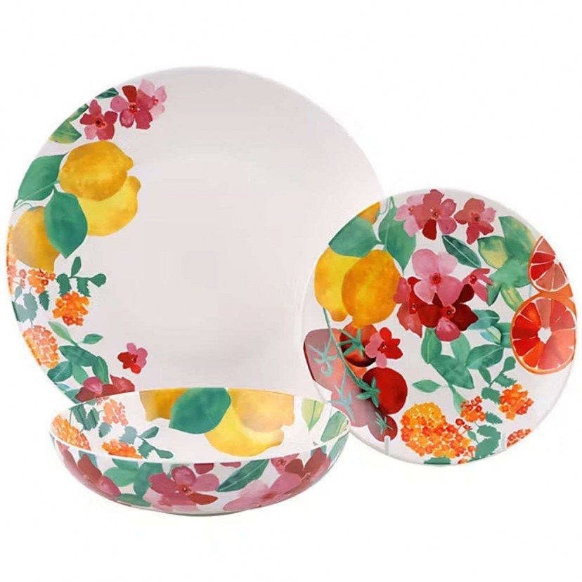 Το Σερβίτσιο Πιάτα Φαγητού Coupe Capri περιλαμβάνει τέσσερα πιάτα φαγητού, τέσσερα πιάτα γλυκού και τέσσερα μπωλ, τα οποία θα προσθέσουν μια ευχάριστη αισθητική στην κουζίνα σας. Αυτό το σερβίτσιο διαθέτει έναν κομψό συνδυασμό σχεδίων που αναδεικνύεται υπέροχα χάρη στις μοναδικές αποχρώσεις. Είναι κατασκευασμένο από ποιοτική πορσελάνη και προσφέρει εντυπωσιακά κομμάτια που μπορείτε να χρησιμοποιήσετε για το σερβίρισμα των καλεσμένων σας. Είναι κατάλληλα για χρήση σε φούρνο μικροκυμάτων και πλυντήριο πιάτων, προσφέροντας έτσι ευκολία στη χρήση και τη συντήρηση.