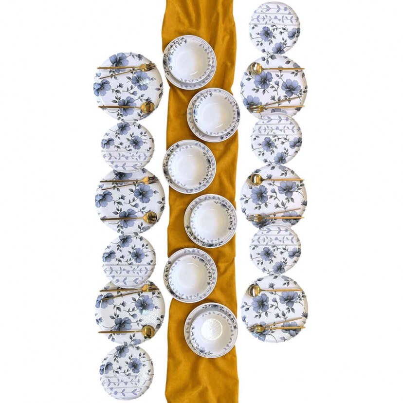 1 Σετ Πιάτα Φαγητού: 6 Πιάτα: Διάμετρος: 26 cm, Ύψος: 2,5 cm & 6 Πιάτα: Διάμετρος: 22 cm, Ύψος: 3,5 cm & 6 Πιάτα: Διάμετρος: 20 cm, Ύψος: 2 cm & 6 Μπωλ: Διάμετρος: 16 cm, Ύψος: 4,5 cm