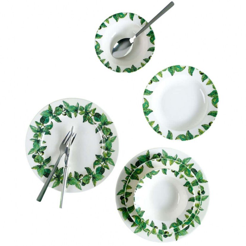1 Σερβίτσιο: 6 Πιάτα Φαγητού: 24 cm, Ύψος: 2 cm & 6 Πιάτα Φρούτου: Διάμετρος: 19 cm, Ύψος: 3.5 cm & 6 Μπωλ: Διάμετρος: 14 cm, Ύψος: 4 cm