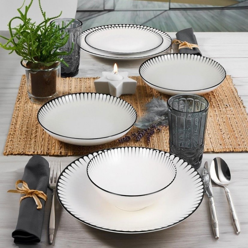 Το Σερβίτσιο Πιάτα Φαγητού 387GRP1361 συνδυάζει μοντέρνο και κομψό σχεδιασμό με ένα μονόχρωμο φινίρισμα και διακριτικό σχέδιο περιμετρικά του χείλους. Το σετ αυτό προσφέρει μια κομψή και διαχρονική εμφάνιση για το τραπέζι σας, κάνοντάς το ιδανικό για κάθε περίσταση, από καθημερινά γεύματα μέχρι ειδικές περιστάσεις. Κατασκευασμένο από φίνα πορσελάνη, αυτό το υπέροχο σερβίτσιο διακρίνεται για την αντοχή και την εκλεπτυσμένη υφή. Το σετ περιλαμβάνει έξι πιάτα σερβιρίσματος για το κυρίως πιάτο, έξι βαθιά πιάτα, έξι πιάτα γλυκού και έξι μπωλ με χωρητικότητα 250 ml.