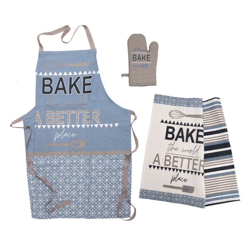 1 Σετ: 2 Ποτηρόπανα: 40x60 cm & 1 Γάντι: 17x29 cm & 1 Ποδιά: 60x80 cm