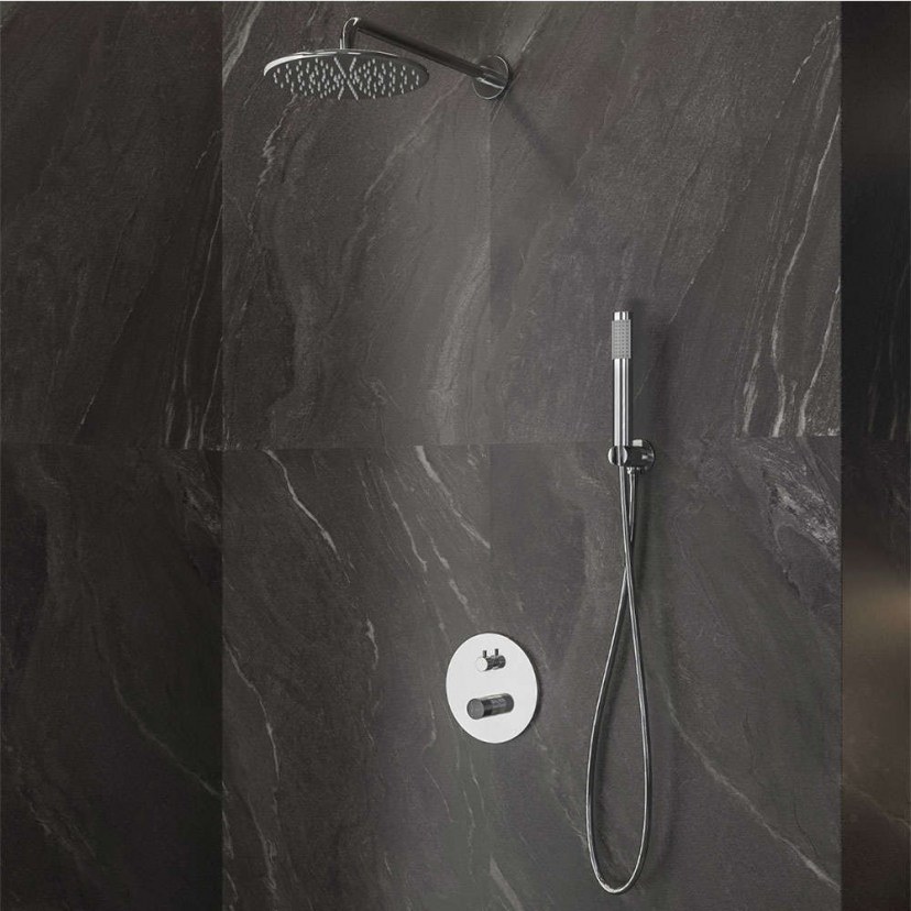 Το Σετ Μπαταρίας Εντοιχισμού Ντους Joan Marmo προσφέρει μια πλήρη και κομψή λύση για τον χώρο του ντους σας. Περιλαμβάνει μηχανισμό κεραμικών δίσκων για ακριβή ρύθμιση της θερμοκρασίας και της ροής του νερού, κεφαλή ντους INOX Ø200 mm που παρέχει ευχάριστη ροή νερού με λειτουργία βροχής, και επιτοίχιο μπράτσο για τη στήριξη της κεφαλής ντους. Το σετ διαθέτει επίσης μεταλλική παροχή ντους και βάση στήριξης για το τηλέφωνο. Περιλαμβάνει τηλέφωνο ντους από ABS και σπιράλ PVC 150 cm για ευκολία στη χρήση. Η μπαταρία διαθέτει εναλλάκτη 3 εξόδων, επιτρέποντας τη μετάβαση μεταξύ της κεφαλής ντους και του τηλεφώνου ντους. Το σετ περιλαμβάνει επίσης κώδωνα ντους και βάση στήριξης του τηλεφώνου. Η κατασκευή είναι από κράμα ορειχάλκου και η λειτουργία ροής είναι βροχής. Ο μείκτης ντους 2 εξόδων έχει διάμετρο Ø18,5 cm, η κεφαλή ντους είναι στρόγγυλη με διάμετρο Ø23 cm, και ο βραχίονας μπάνιου έχει μήκος 40 cm. Αυτό το σετ προσφέρει την τέλεια συνδυασμένη λύση για σύγχρονα και πολυτελή ντους, συνδυάζοντας λειτουργικότητα και αισθητική.