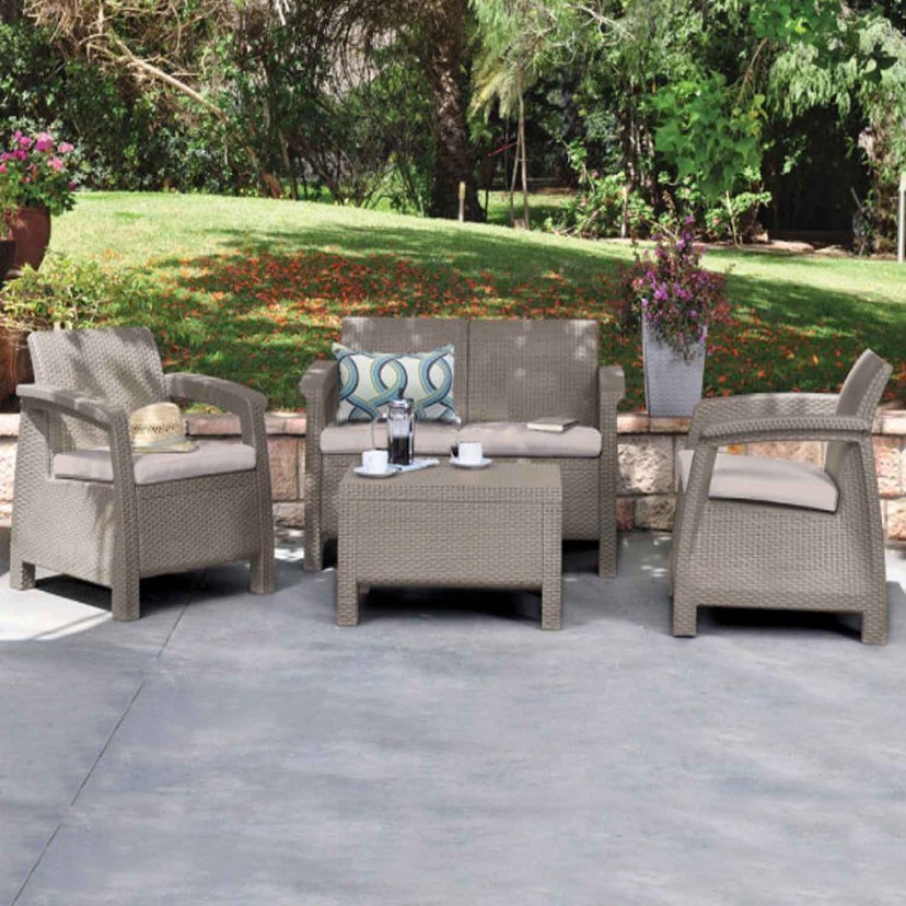 Ιδανική επιλογή για την βεράντα σας αποτελεί το σετ σαλονιού Corfu. Διαθέτει ιδιαίτερο σχεδιασμό και χρώμα που ταιριάζει απόλυτα με κάθε χώρο. Απολαύστε άνετα τις ζεστές ημέρες και νύχτες στον κήπο. Το σετ περιλαμβάνει έναν διθέσιο καναπέ, δύο πολυθρόνες και ένα τραπεζάκι. Στην τιμή συμπεριλαμβάνονται τα μαξιλάρια του σαλονιού. Οι οδηγίες συναρμολόγησης βρίσκονται εντός της συσκευασίας.