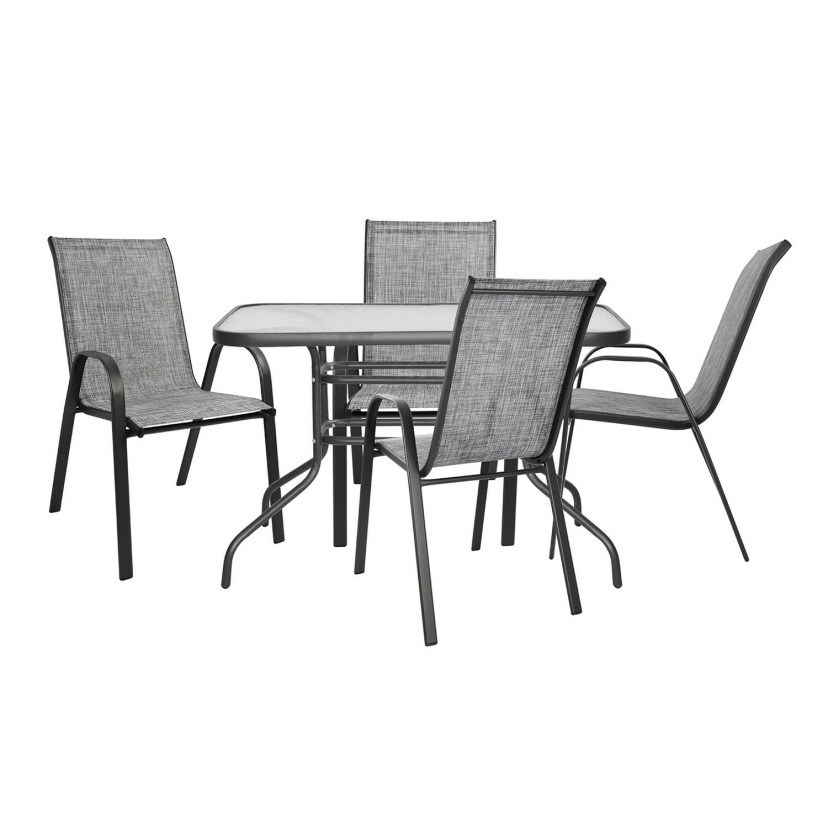 Με το σετ τραπεζαρίας Hm5193 θα ανανεώσετε τη διακόσμηση του εξωτερικού σας χώρου. Διαχρονικός σχεδιασμός, που θα διακοσμήσει ιδανικά τον κήπο ή τη βεράντα σας. Απολαύστε άνετα τις ζεστές ημέρες και νύχτες. Το σετ περιλαμβάνει ένα τραπέζι με ενσωματωμένο γυαλί ασφαλείας και τέσσερις πολυθρόνες εξαιρετικής αντοχής σε όλες τις καιρικές συνθήκες. Στη συσκευασία περιλαμβάνονται οι οδηγίες συναρμολόγησης.