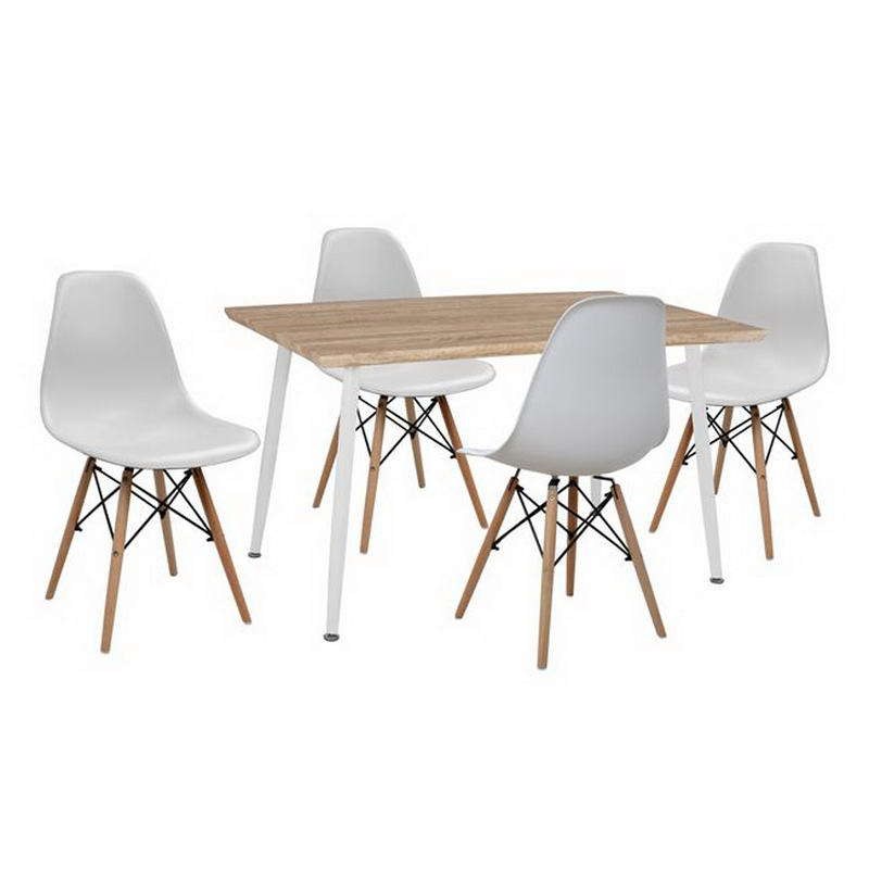Δημιουργήστε έναν χώρο με σύγχρονη και εντυπωσιακή διακόσμηση επιλέγοντας το σετ τραπεζαρίας 5 τμχ Twist HM10349.01. Διαθέτει μοντέρνο design και υπέροχο χρώμα που θα αναδείξει τον χώρο σας με τον πιο εντυπωσιακό τρόπο. Το τραπέζι διαθέτει επιφάνεια από MDF, η οποία στηρίζεται σε μεταλλικά πόδια, ενώ οι καρέκλες διαθέτουν πόδια από μασίφ ξύλο και κάθισμα από πολυπροπυλένιο. Στο σετ περιλαμβάνονται ένα τραπέζι και τέσσερεις καρέκλες.
