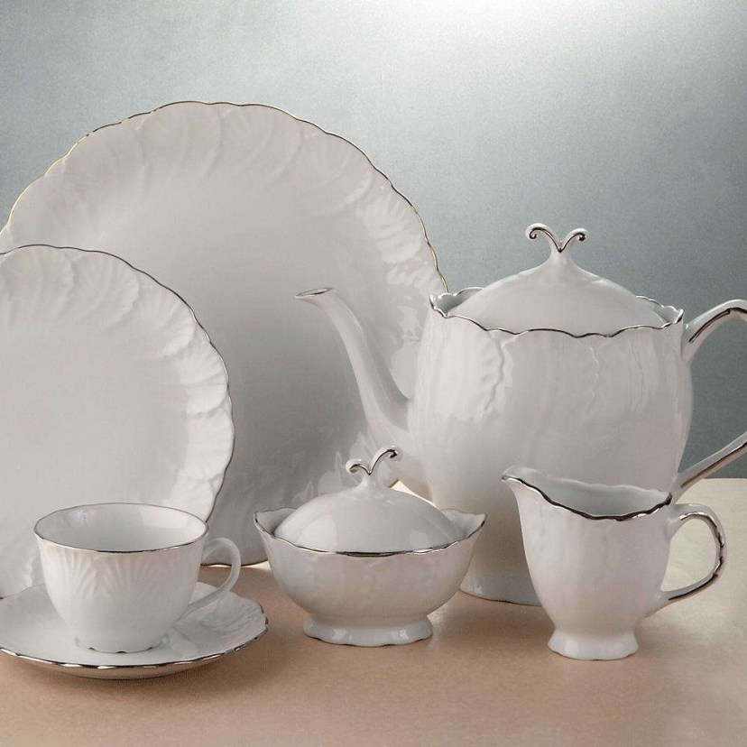 Το Σετ Τσαγιού Jasmine 29.001.31P διαθέτει φινετσάτο ανάγλυφο σχέδιο, το οποίο είναι εμπνευσμένο από τα πέταλα του άνθους γιασεμιού, καθιστώντας το ιδανικό για εσάς που θέλετε να εντυπωσιάσετε τους καλεσμένους σας. Περιλαμβάνει μία τσαγιέρα, μία ζαχαριέρα, μία γαλατιέρα και 6 φλυτζάνια τσαγιού μαζί με τα πιατάκια τους. Το αισθητικό αποτέλεσμα απογειώνουν οι λαμπερές διακοσμητικές λεπτομέρειες πλατίνας!