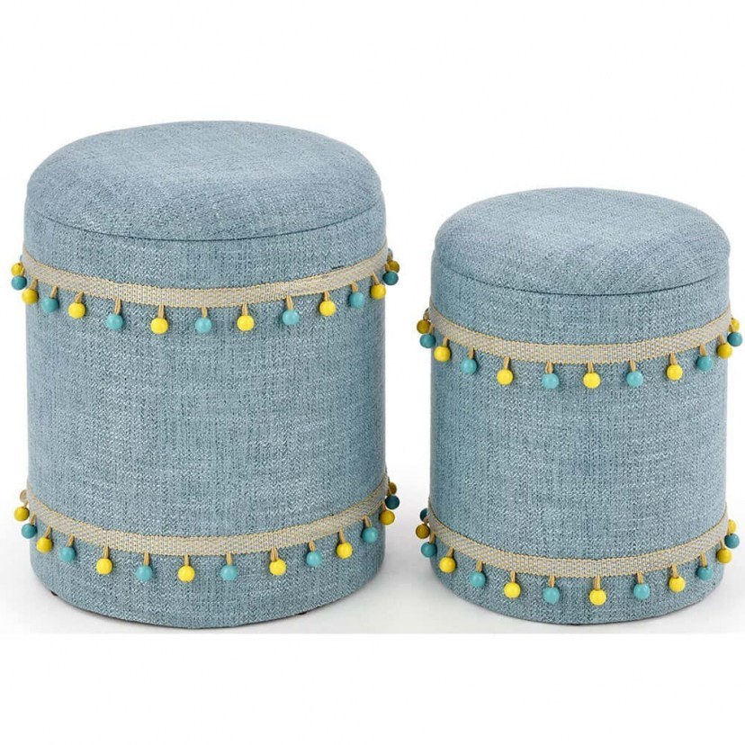 Σκαμπό Με Αποθηκευτικό Χώρο Drago (Σετ 2Τμχ) 162400539 Φ38x44/30x37cm Blue