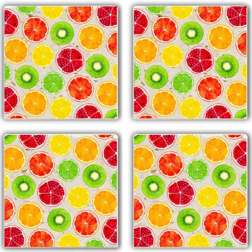 Το Σετ Σουβέρ 366TYR1120 περιλαμβάνει τέσσερα σουβέρ με υπέροχα σχέδια φρούτων, που θα χαρίσει χρώμα και φρεσκάδα στον χώρο σας. Τα μοναδικά μοτίβα και οι υφές της φυσικής πέτρας δημιουργούν ένα μαγευτικό οπτικό αποτέλεσμα που θα εντυπωσιάσει και θα αφήσει άφωνους τους καλεσμένους σας. Καθένα από τα 4 σουβέρ αποτελεί έργο τέχνης, πλούσιο σε λεπτομέρειες και προσεγμένο στο χέρι από φυσική πέτρα.