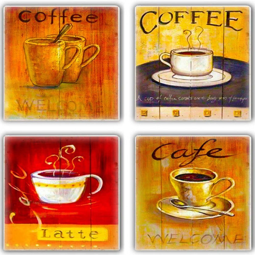 1 Σετ: 4 Σουβέρ: Μήκος: 10 cm, Πλάτος: 10 cm, Ύψος: 1 cm
