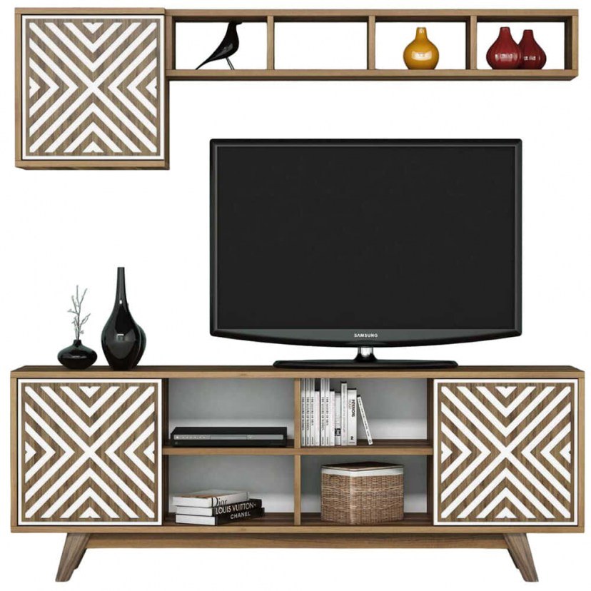 Η Σύνθεση Τηλεόρασης Inci είναι πανέμορφη και εντυπωσιακή, με περίτεχνο σχέδιο στις προσόψεις των ντουλαπιών που την καθιστά ένα μοναδικό διακοσμητικό στοιχείο για το σαλόνι σας. Αποτελείται από ένα έπιπλο τηλεόρασης με δύο ντουλάπια και τέσσερα ράφια, προσφέροντας αρκετό αποθηκευτικό χώρο για τα ηλεκτρονικά σας και άλλα αξεσουάρ. Συνοδεύεται από μία επιτοίχια ραφιέρα με ένα ντουλάπι, ιδανική για να οργανώσετε βιβλία, διακοσμητικά αντικείμενα και άλλα προσωπικά είδη. Κατασκευασμένη από μοριοσανίδα με επένδυση μελαμίνης, η Σύνθεση Τηλεόρασης Inci προσφέρει ανθεκτικότητα και μοντέρνα αισθητική, κάνοντάς την την ιδανική επιλογή για να αναδείξετε τον χώρο σας με κομψότητα και λειτουργικότητα.