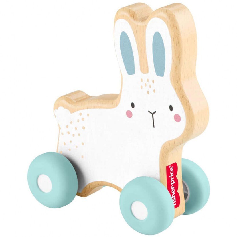 Το Συρόμενο Παιχνίδι Push-Along Bunny JDM52 είναι ένα ξύλινο όχημα σε σχήμα κουνελιού που μεγαλώνει μαζί με το μωρό, υποστηρίζοντας τη μετάβασή του από το να κάθεται στο να μπουσουλάει. Οι περιστρεφόμενοι τροχοί από μαλακή σιλικόνη ενισχύουν τις λεπτές κινητικές δεξιότητες, ενώ το παιχνίδι προάγει τη γενική ανάπτυξη του παιδιού. Κατασκευασμένο από ξύλο πιστοποιημένο FSC, αποτελεί ασφαλές και εκπαιδευτικό παιχνίδι για μωρά και νήπια.
