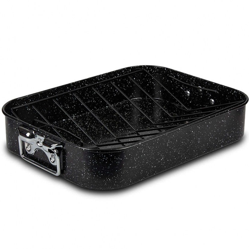 Το Αντικολλητικό Ορθογώνιο Ταψί Με Σχάρα Nature 10-103-168 είναι μία ποιοτική επιλογή για την κουζίνα σας, που θα σας βοηθήσει να μαγειρέψετε τα πιο νόστιμα και υγιεινά φαγητά. Κατασκευάζεται από ατσάλι και χαρίζει ομοιόμορφη κατανομή θερμότητας σε όλο το σκεύος για καλύτερα αποτελέσματα. Χάρη στην αντικολλητική επίστρωση stone το φαγητό αφαιρείται εύκολα και το καθάρισμα γίνεται παιχνιδάκι. Διαθέτει αποσπώμενη σχάρα σε σχήμα V, που κρατά το ψητό σας ψηλά, έτσι ώστε να επιτευχθεί ομοιόμορφο ψήσιμο και το λίπος να συγκεντρωθεί στο ταψί. Οι δύο εργονομικές λαβές προσφέρουν ευκολία στη μεταφορά. Χρειάζεται πλύσιμο πριν από την πρώτη χρήση. Πριν από κάθε χρήση πρέπει να αλείφετε το σκεύος με λάδι ή βούτυρο. Η μέγιστη θερμοκρασία δε θα πρέπει να ξεπερνάει τους 230°C. Η χρήση λαδόκολλας και το πλύσιμο στο χέρι θα επιμηκύνουν τη διάρκεια ζωής του σκεύους και της αντικολλητικής επίστρωσης.