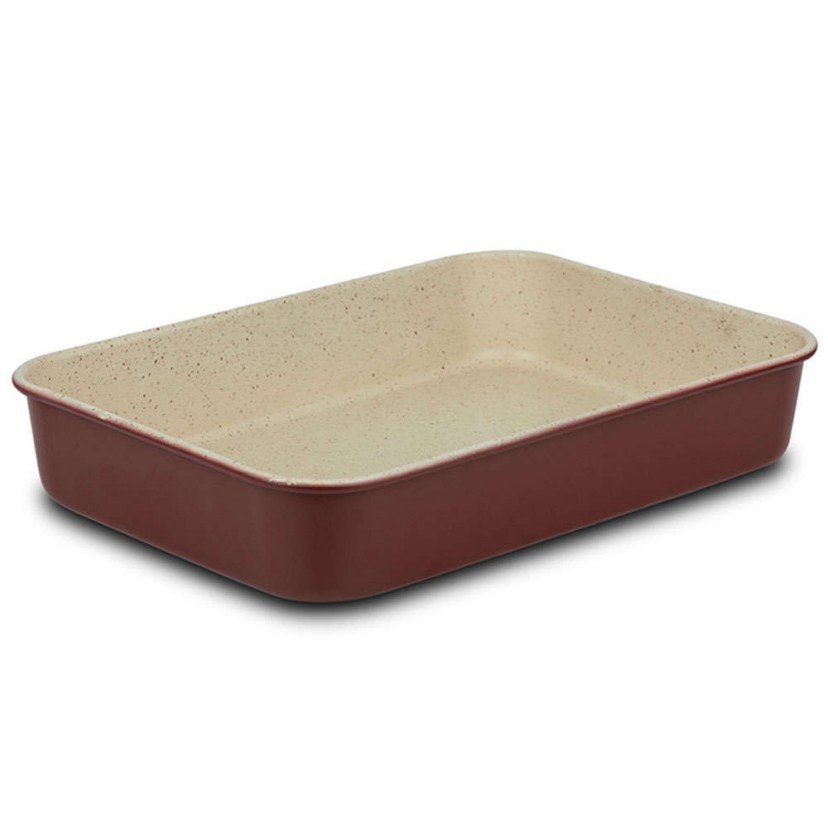 Το Αντικολλητικό Ορθογώνιο Ταψί Terrestrial 10-103-171 είναι ένα απαραίτητο σκεύος για την κουζίνα σας. Θα σας βοηθήσει να ετοιμάσετε τις πιο νόστιμες αλμυρές και γλυκιές συνταγές. Κατασκευάζεται από ποιοτικό ατσάλι που εξασφαλίζει ομοιόμορφη κατανομή της θερμότητας. Η αφαίρεση του περιεχομένου και ο καθαρισμός του γίνονται εύκολα, λόγω της αντικολλητικής επίστρωσης granite. Χρειάζεται πλύσιμο πριν από την πρώτη χρήση. Πριν από κάθε χρήση πρέπει να αλείφετε το σκεύος με λάδι ή βούτυρο. Η μέγιστη θερμοκρασία δε θα πρέπει να ξεπερνάει τους 230°C. Η χρήση λαδόκολλας και το πλύσιμο στο χέρι θα επιμηκύνουν τη διάρκεια ζωής του σκεύους και της αντικολλητικής επίστρωσης.