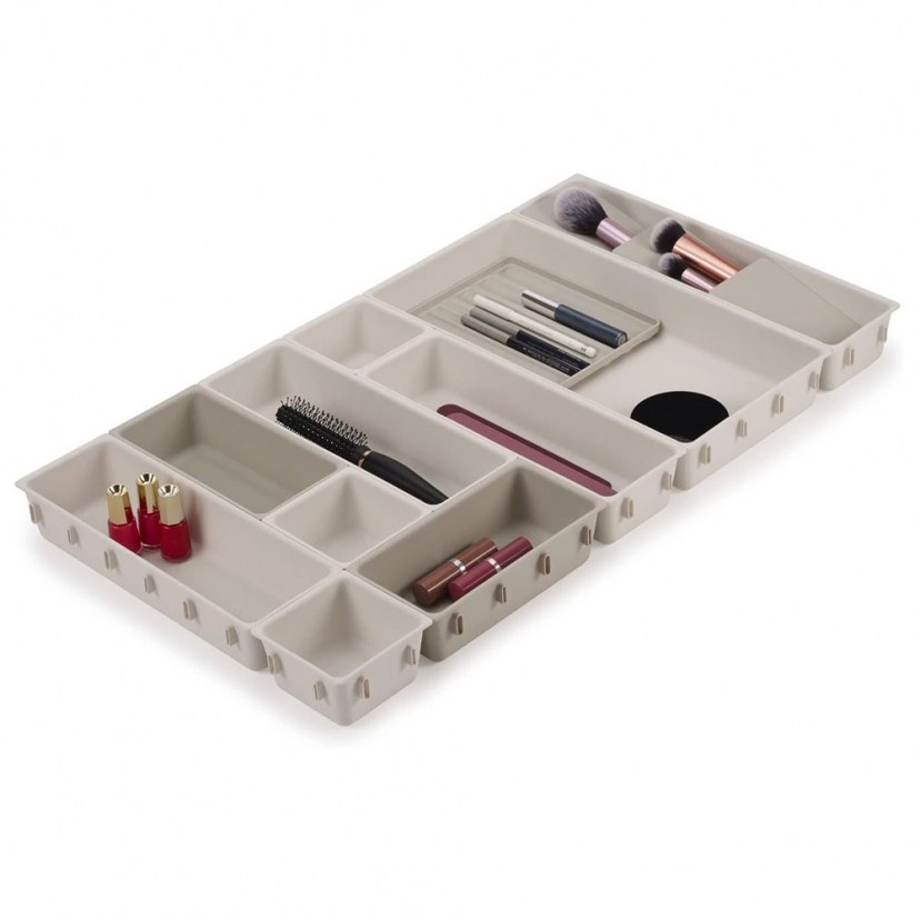 Η Θήκη Οργάνωσης Makeup Viva 75010 φέρνει ευελιξία και τάξη στο χώρο του μακιγιάζ σας, χάρη στον modular σχεδιασμό της που μπορεί να προσαρμοστεί σε οποιοδήποτε συρτάρι. Τα μεμονωμένα διαμερίσματα συνδέονται εύκολα μεταξύ τους, επιτρέποντας τη δημιουργία της ιδανικής διάταξης για κάθε ανάγκη. Η θήκη διαθέτει πολυεπίπεδη βάση για πινέλα και ειδικό δίσκο για μολύβια ματιών, lip gloss και μάσκαρ. Ιδανική για την οργάνωση καλλυντικών, βερνικιών νυχιών, αξεσουάρ μαλλιών και πολλών άλλων αντικειμένων περιποίησης, προσφέροντας έναν τακτοποιημένο, λειτουργικό και καλαίσθητο χώρο για καθημερινή χρήση.