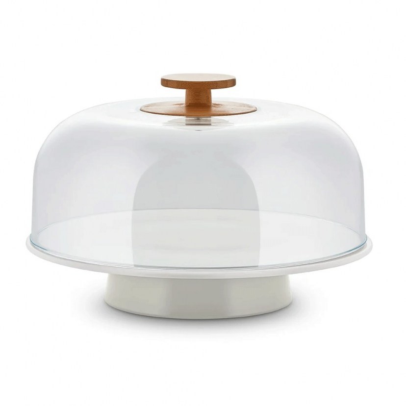 Η Τουρτιέρα Με Καπάκι & Πόδι Mattina BG06 είναι μια εξαιρετική επιλογή για τους λάτρεις του ψησίματος και της παρουσίασης των δημιουργιών τους στο τραπέζι. Περιλαμβάνει ένα λευκό πορσελάνινο πιάτο με εμαγιέ γκρι πορσελάνινη βάση και ένα διαφανές θερμοπλαστικό καπάκι με πόμολο από μπαμπού. Ο μινιμαλιστικός και κομψός του σχεδιασμός το καθιστά κατάλληλο για κάθε τραπέζι φαγητού, προσθέτοντας μια διακοσμητική πινελιά στην παρουσίαση των γευμάτων. Επιπλέον, μπορεί να χρησιμοποιηθεί επίσης για το σερβίρισμα τυριών ή φρούτων ως επιδόρπιο.