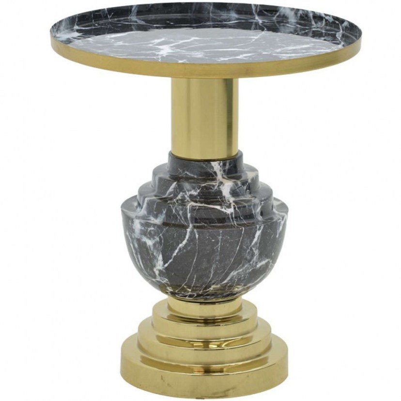 Το Βοηθητικό Τραπεζάκι Cogent είναι ένα εντυπωσιακό έπιπλο που θα προσδώσει στο χώρο σας μια μοναδική αισθητική. Διαθέτει ένα εντυπωσιακό σχέδιο που συνδυάζει λεπτομέρειες με λαμπερό φινίρισμα και επιφάνειες με απομίμηση μαρμάρου. Αυτό το σχέδιο προσδίδει πολυτέλεια και κομψότητα στον χώρο. Κατασκευάζεται από ενισχυμένο μέταλλο υψηλής ποιότητας, εξασφαλίζοντας την αντοχή και την αξιοπιστία του επίπλου. Το προϊόν παραδίδεται αμοντάριστο.