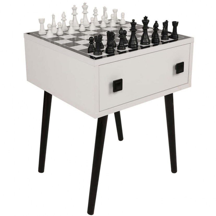Το Βοηθητικό Τραπεζάκι - Σκάκι Chesso συνδυάζει μοντέρνο design με πρακτικότητα και διασκέδαση. Η μοναδική επιφάνεια σκακιού προσφέρει μια διασκεδαστική πινελιά στον χώρο σας, ενώ ταυτόχρονα το τραπεζάκι εξυπηρετεί και ως λειτουργικό έπιπλο. Κατασκευασμένο από μοριοσανίδα με επένδυση μελαμίνης, εξασφαλίζει ανθεκτικότητα και ευκολία στη συντήρηση. Το εργονομικό συρτάρι του παρέχει επιπλέον αποθηκευτικό χώρο για να οργανώσετε τα προσωπικά σας αντικείμενα με άνεση και στυλ.