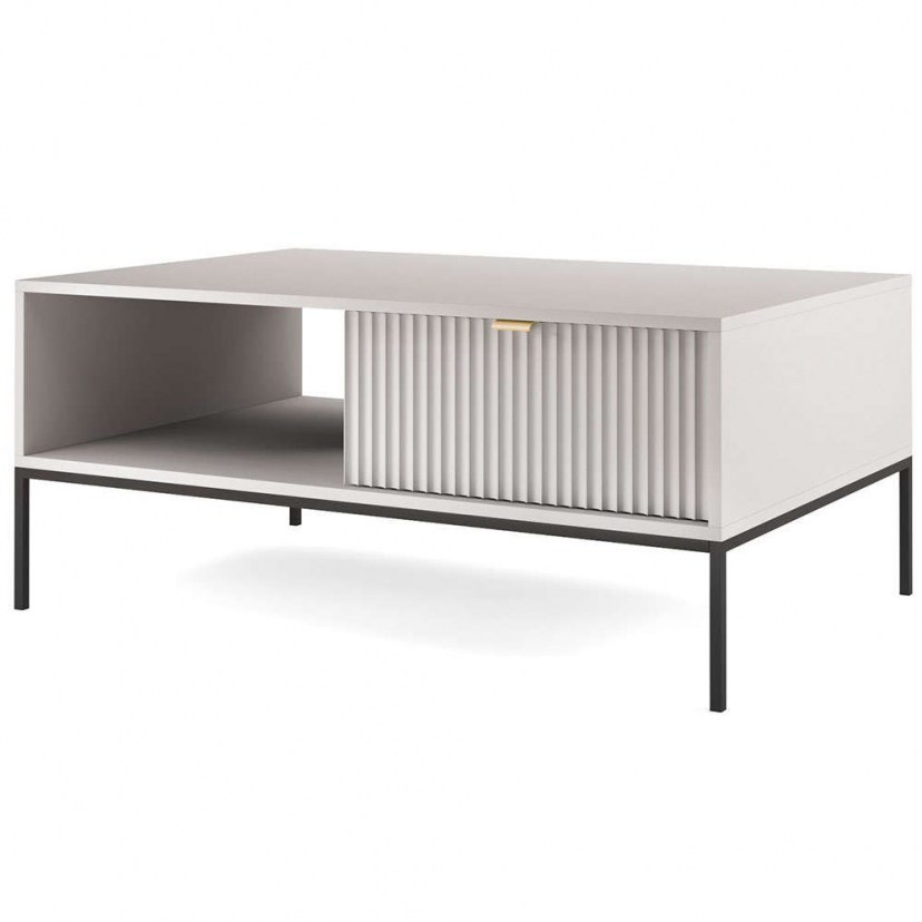 Το Τραπεζάκι Σαλονιού Palermo προσφέρει μοντέρνο σχεδιασμό με πρακτικές διαστάσεις, ιδανικό για την οργάνωση ενός σύγχρονου σαλονιού. Διαθέτει ένα συρτάρι και ένα ράφι στο κάτω μέρος, που σας επιτρέπουν να αποθηκεύσετε αντικείμενα και να διατηρήσετε τον χώρο σας τακτοποιημένο. Η στιβαρή κατασκευή του εξασφαλίζει μακροχρόνια χρήση, ενώ η ευρωπαϊκή του προέλευση εγγυάται την ποιότητα και την αξιοπιστία. Ο σκελετός από laminated μοριοσανίδα 16 mm με άκρες ABS, η πρόσοψη από MDF 18 mm, τα μεταλλικά πόδια και οι μεταλλικές λαβές συνδυάζονται για να προσφέρουν ένα εντυπωσιακό και λειτουργικό έπιπλο. Το προϊόν παραδίδεται αμοντάριστο.