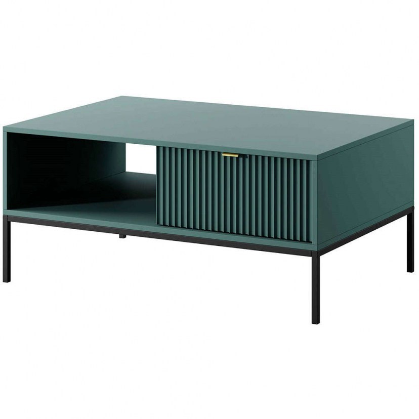 Το Τραπεζάκι Σαλονιού Palermo προσφέρει μοντέρνο σχεδιασμό με πρακτικές διαστάσεις, ιδανικό για την οργάνωση ενός σύγχρονου σαλονιού. Διαθέτει ένα συρτάρι και ένα ράφι στο κάτω μέρος, που σας επιτρέπουν να αποθηκεύσετε αντικείμενα και να διατηρήσετε τον χώρο σας τακτοποιημένο. Η στιβαρή κατασκευή του εξασφαλίζει μακροχρόνια χρήση, ενώ η ευρωπαϊκή του προέλευση εγγυάται την ποιότητα και την αξιοπιστία. Ο σκελετός από laminated μοριοσανίδα 16 mm με άκρες ABS, η πρόσοψη από MDF 18 mm, τα μεταλλικά πόδια και οι μεταλλικές λαβές συνδυάζονται για να προσφέρουν ένα εντυπωσιακό και λειτουργικό έπιπλο. Το προϊόν παραδίδεται αμοντάριστο.