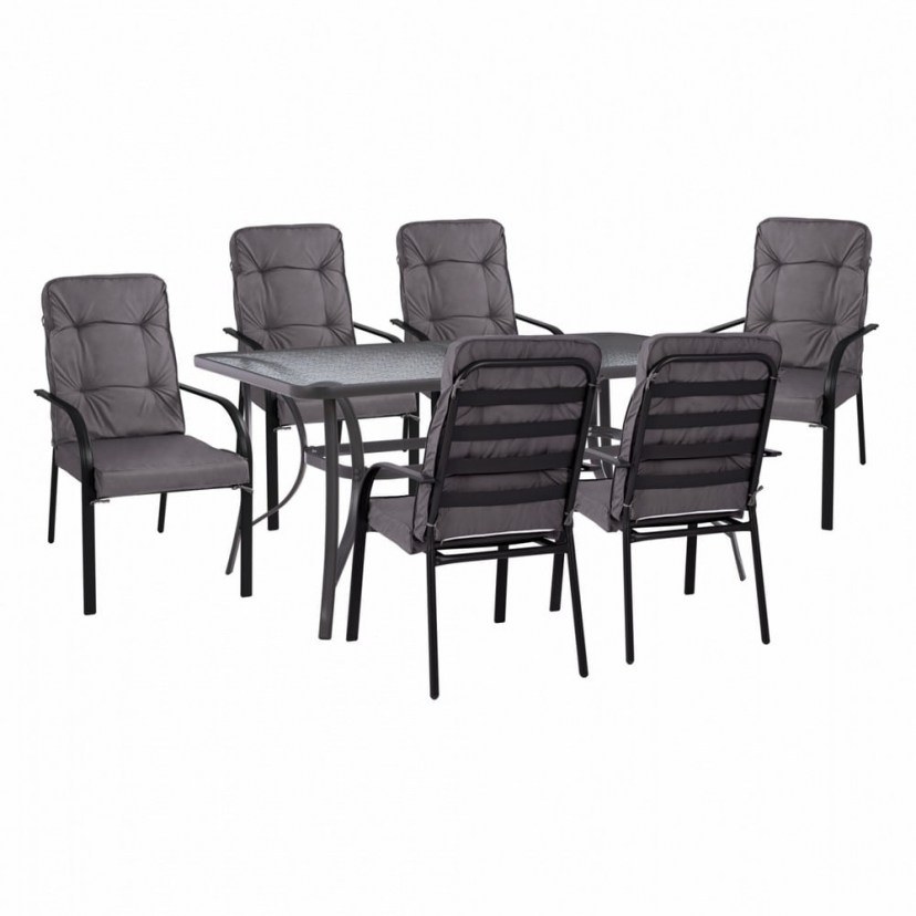 Το Σετ Τραπεζαρία HM11475 είναι η ιδανική επιλογή για όσους αναζητούν στυλ και πρακτικότητα για τον εξωτερικό χώρο τους. Το τραπέζι τραπεζαρίας διαθέτει μεταλλική κατασκευή και ενσωματωμένο τζάμι ασφαλείας, προσφέροντας ανθεκτικότητα και κομψό σχεδιασμό. Περιλαμβάνει μια τρύπα στο κέντρο για την τοποθέτηση ομπρέλας, προσφέροντας άνεση και προστασία από τον ήλιο. Οι έξι μοντέρνες πολυθρόνες εξωτερικού χώρου είναι επίσης κατασκευασμένες από μέταλλο και διαθέτουν μεταλλικούς ιμάντες στήριξης για το μαξιλάρι. Τα μαξιλάρια πάχους 8 εκατοστών, με φερμουάρ για εύκολο καθάρισμα, προσφέρουν άνεση και στυλ. Αυτό το σετ είναι ιδανικό για χρήση τόσο σε οικιακό όσο και σε επαγγελματικό περιβάλλον, προσφέροντας μια άνετη και κομψή λύση για κάθε εξωτερικό χώρο. Το προϊόν παραδίδεται αμοντάριστο.