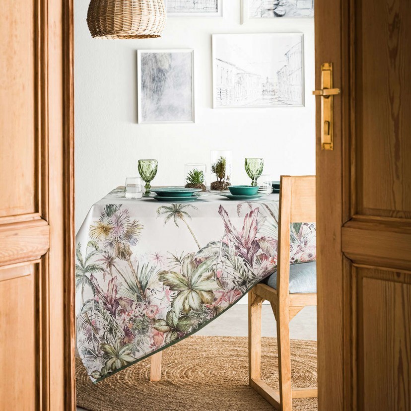 Η νέα συλλογή της εταιρείας Gofis Home θα ανανεώσει το χώρο σας με τον καλύτερο τρόπο. Το υπέροχο Τραπεζομάντηλο Jaquarda 826, με τα τυπωτά floral σχέδια θα αλλάξει ριζικά το χώρο και τη διάθεσή σας. Είναι κατασκευασμένο από βαμβάκι και πολυεστέρα και βαμμένο με ανεξίτηλα χρώματα. Είναι αλέκιαστο με ειδικό φινίρισμα τύπου resina, που κρατά μαλακό το ύφασμα όμως μπορεί να απωθεί τους λεκέδες και το νερό. Πλένεται στο πλυντήριο στους 30° C.
