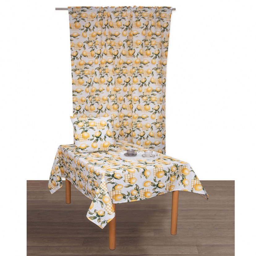 Το Τραπεζομάντηλο Λεμονιά σχεδιάστηκε για να προσδώσει ζωντάνια και φρεσκάδα στην τραπεζαρία σας. Φέρει όμορφα σχέδια με λεμόνια που θα σας κάνουν να το λατρέψετε. Κατασκευάζεται από ποιοτική λονέτα Ισπανίας, που προσφέρει ανθεκτικότητα και ευχάριστη αίσθηση.